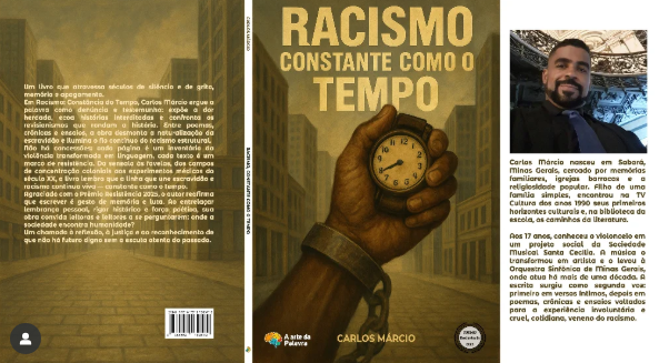 “Racismo: constante como o tempo” é o título do livro que transformou o sonho literário do mineiro Carlos Márcio em uma grande conquista. A obra venceu a categoria Poesia na quarta edição do Prêmio Resistência 2025, promovido pela Editora A Arte da Palavra, em São Paulo, uma iniciativa voltada exclusivamente a valorizar e dar visibilidade às vozes negras da nossa literatura.