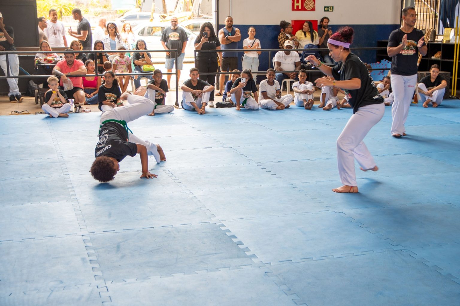 Durante o evento, o público pôde acompanhar rodas animadas, com homens e mulheres tocando instrumentos tradicionais, cantando e celebrando os valores de respeito e disciplina que marcam a prática.