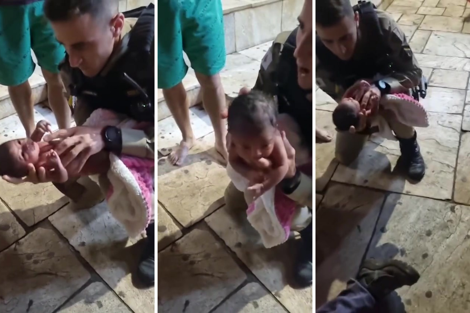 Segundo a corporação, os pais de Ester Arcanjo Pereira chegaram à base em situação de desespero, levando a recém-nascida desacordada e sem sinais de respiração. O sargento Renato Luiz Francisca e o soldado Fernando Lopes Machado realizaram a avaliação rápida do quadro clínico e iniciaram as manobras de socorro.