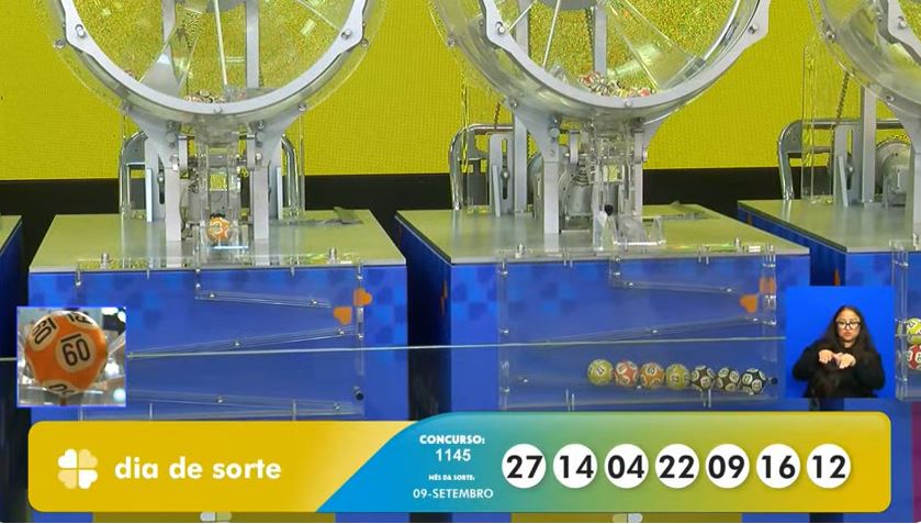 Números da Dia de Sorte 1145 de hoje: 04, 09, 12, 14, 16, 22, 27. Mês da sorte: setembro.