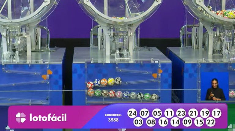 Números da Lotofácil 3588 de hoje: 03, 05, 07, 08, 09, 11, 14, 15, 16, 17, 19, 21, 22, 23, 24.