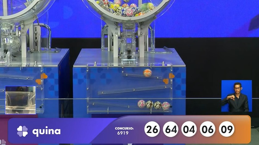 Números do concurso 6919 da Quina: 04, 06, 09, 26, 64.